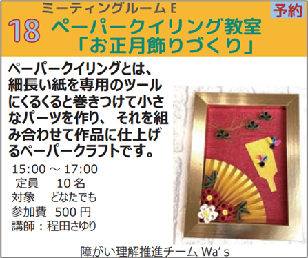 | クイリング教室:30分で作れるカード作り | 600円 |